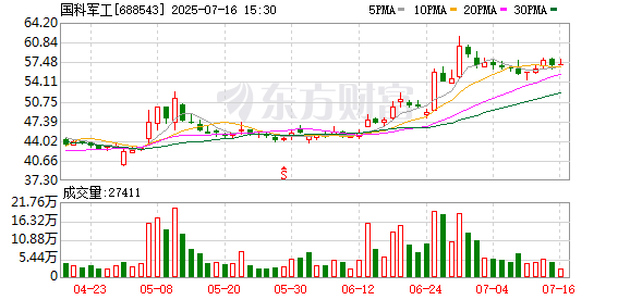 国科军工7月16日大宗交易平台出现一笔成交,成交量5.00万股,成交金额250.60万元,大宗交易成交价为50.12元,相对今日收盘价折价12.07%。该笔交易的买方营业部为中信证券股份有限公司上海分公司,卖方营业部为华泰证券股份有限公司南昌沿江北大道证券营业部。